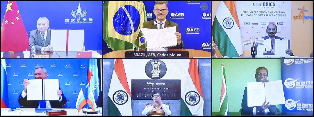 On August 18, 2021, the Agreement on BRICS Cooperation in the Remote Sensing Satellite Constellation was signed at the vedio meeting held between BRICS space agencies.