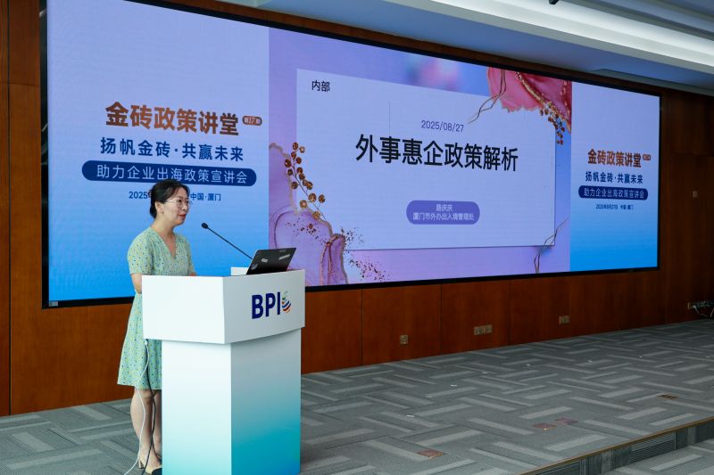 8月27日,第十七期金砖政策讲堂“扬帆金砖 共赢未来——助力企业出海政策宣讲会”成功举办。本期讲堂由金砖创新中心、市公安局出入境管理局主办,市外办、市市场监管局和厦门海关支持,活动吸引了90余名政府部门、移民事务服务站及出海企业代表参与,共同探讨企业出海新政策、新机遇。