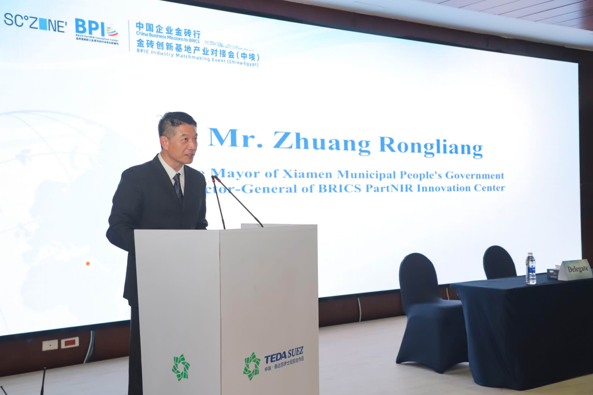 厦门市委常委、副市长、金砖创新基地主任庄荣良在致辞中表示中国是对埃及投资最为活跃且增长速度最快的国家之一,已连续12年稳居埃及最大贸易伙伴国之位。此次对接将成为金砖创新基地拓展与埃及企业合作的新渠道和新契机,充分发挥金砖合作“开放包容、合作共赢”的核心精神,为两国产业合作开辟更为广阔的空间助力,携手共创中埃经济高质量发展的崭新未来,实现合作共赢。