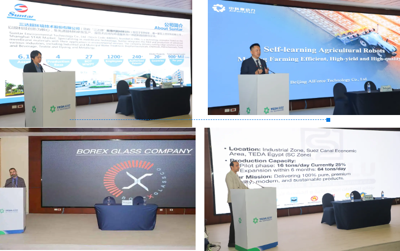 在企业路演环节,来自金砖创新基地合作网络的三达膜环境技术股份有限公司、厦门中科原动力科技有限公司等中国前沿科技企业,展示了其在绿色环保、现代农业等领域的技术解决方案和成功案例。来自埃及Borex玻璃公司、PUNALU塑料木材工业有限公司等埃方企业代表围绕各自公司的主营业务、产品优势进行宣介。